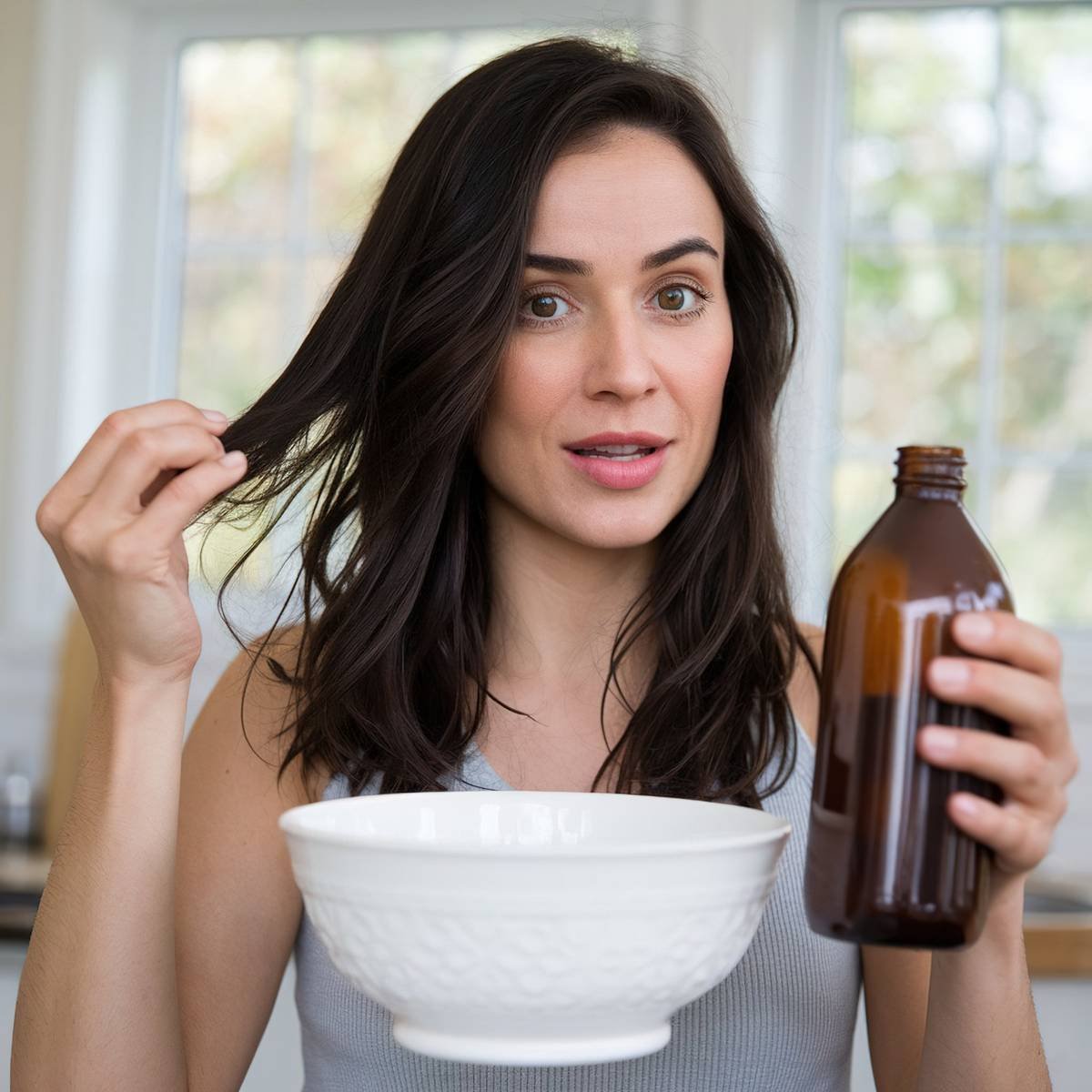 Bây giờ dành cho những phụ nữ có mái tóc sẫm màu. Để che đi phần chân tóc bạc, bạn có thể thử dùng cà phê rửa sạch – nó sẽ giúp tóc có màu sẫm hơn.